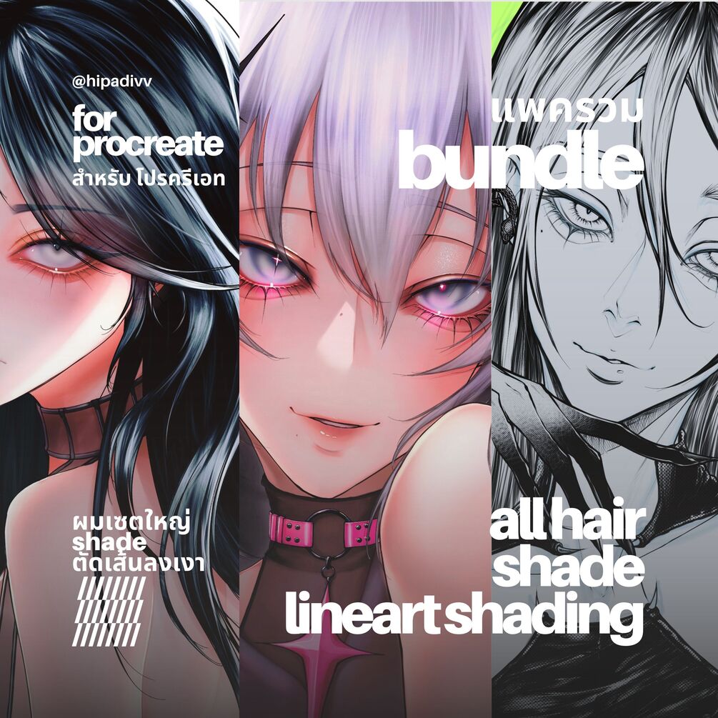 (Commercial Usage Included) hipadivv All Hair + Shade + Lineart and Shading Set Bundle