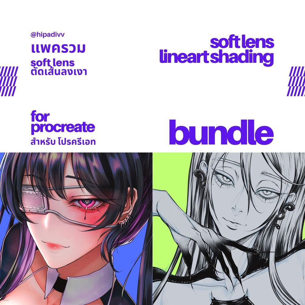 (Commercial Usage Included) hipadivv Soft Lens + Lineart and Shading Bundle Set for Procreate